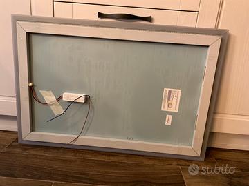 Vendo per inutilizzo questo specchio da bagno PROFILUX rettangolare retroilluminato a led di cm 90 x 60 con cornice opalina grigia equivalente al nuovo perfettamente funzionante senza nessun segno di usura ne graffi sullo specchio come da foto. Ancora In imballo originale. Lo specchio puó essere montato sia in verticale che in orizzontale.