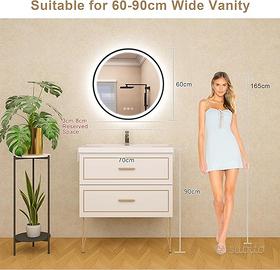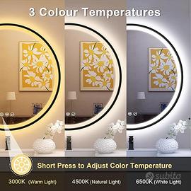 【Dimmergibile e 3 temperature di colore】 I nostri specchio bagno led sono dimmerabili (10%-100%) per regolare l'ambiente di illuminazione in base al vostro umore o alle vostre esigenze. Scegliete tra luce bianca calda (3000K), luce bianca neutra (4000K) e luce bianca fredda (6500K) per creare l'atmosfera ideale per ogni occasione o preferenza. Gli specchi sono estremamente chiari (CRI>90+), illuminano perfettamente ogni dettaglio e vi fanno sentire assertivo.