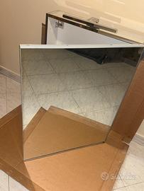 Specchio bagnio piu luce , specchio con ripiani interni vendesi per misura errata mai montato .nuovo con luce inclusa .. scontrino di acquisdo dimostrabile (Pensile bagno Remix cromo in legno SENSEA, 1 anta apertura da sinistra P 16.1 x L 60 x H 76.9 cm) ( Applique LED bagno Led 7w grigio IP44, luce bianco naturale 700 lumen)