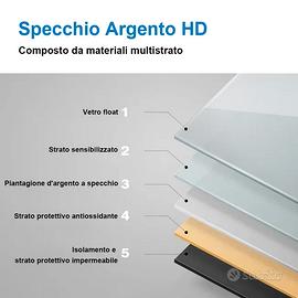 Specchio bagno rettangolare 80x60 cm con luce led, antiappannamento, touch e altoparlante bluetooth. Nuovo, mai usato e con ancora la pellicola applicata.
