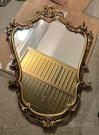 Specchio Specchiera Barocco Legno Foglia Oro Traforata Artistico fiorentino Vendo per inutilizzo, leggermente sbeccata la punta Dimensioni 115 x 80 cm