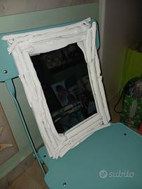 specchio con cornice in legni di mare colorati di bianco. cm 35x45