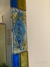 Specchio dimensioni 118 x 60 cm. Lavorazione artigianale, cornice in vetro fusione con murrine di Venezia. Nuovo senza alcun difetto. Senza macchie o aloni sullo specchio e sulla cornice.