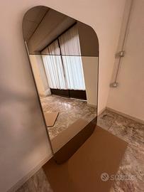 Specchio misura 80 x 140, zona centrale chiaro zone esterne bronzate, base in legno.