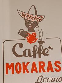 Specchio Caffè Mokaras Livorno vintage misure: altezza 64 cm larghezza 44 cm. La cornice si presenta ottimamente con normali segni del tempo. Lo specchio è perfetto e i colori sono nitidi. Il retro è stabile e ha subito leggermente l'umidità. Sant' Angelo in Vado, PU. Possibile spedizione.