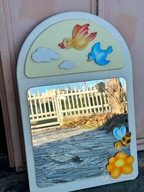 Soecchio cameretta con decorazioni colorste in legno Misura specchio 37x37 Misura con cornice in legno 64x43