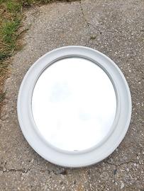 Vendo specchio ovale bianco Carrara e Matta anni 60, matetiale plastico, ottime condizioni, presenta solo un difetto facilmente ritoccabile con del colore (vedi foto) misura 57,5x68. Prezzo 20€ ritiro a Gruaro o il 31 Marzo a Sacile (stadio) o Pordenone (fiera).