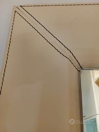 Bellissimo specchio di design con cornice rivestita in cuoio (12,5 cm.) Impunturato in nero, color burro, cm, 200X60. Possibilità di appoggiare a terra o fissare sia in orizzontale che verticale.
