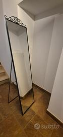 Vendo per inutilizzo elegante specchio da terra con struttura in ferro nero, stabile e resistente, dal design semplice e raffinato.