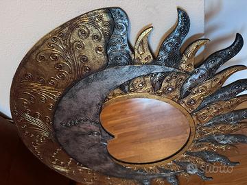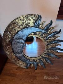 Specchio con cornice sole/luna di diametro 80 centimetri. Vendo a seguito di trasloco e non ho lo spazio per metterlo nella casa nuova. Si richiede ritiro a mano per via delle dimensioni ingombranti.