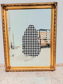 Vengo per rinnovo arredo questo maestoso specchio da parete, un pezzo di grande eleganza che dona luce e profondità a qualsiasi ambiente. La cornice è caratterizzata da una raffinata finitura dorata con decorazioni floreali e motivi a rilievo sugli angoli e lungo i bordi.