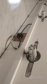 Vendo causa ristrutturazione bagno, 1 specchio completo di 2 mensole e faretti. misure specchio 150cm di larghezza x 97cm di altezza; misura mensola superiore con 4 faretti 180cm di larghezza x 30cm di profondità x 2,5cm di spessore; misura mensola inferiore 150cm di larghezza x 15cm di profondità x 2cm di spessore; i faretti sono con portalampada di porcellana e attacco edison e impianto elettrico canalizzato come da foto. non spedisco causa peso e dimensioni eccessive.