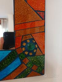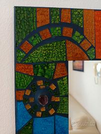 Cornice decorata a mosaico con tessere vetrificate dai colori molto brillanti e vivaci.