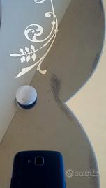 Grande specchio con bordo nero. Lavorazione floreale. Base appoggio in legno (era abbinato ad una cassettiera)