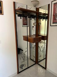 Specchio a muro con cassetto e appendiabiti. L’altezza del cassetto è regolabile cosí come l’appendiabiti. Vi è anche una mensola anch’essa regolabile. Lo specchio non presenta graffi.