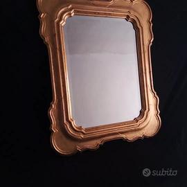 specchio in stile antico , con cornice a vassoio decorata a foglia rame antichizzata , ,specchio molato e sagomato, cornice in legno . misura 88,5 x 71,5