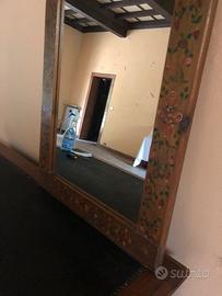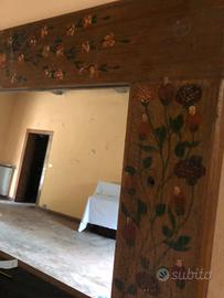 Vendo specchio con antica cornice in legno decorata a mano . Acquistato alla Bifora di Malè (Trento) bottega di antiquariato. Misure 75x58 molto bello perfetto nessun segno
