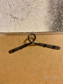 Spessore cornice circa 3 cm. Legno massello finitura shabby colore bianco panna, decori e parti di fissaggio in ferro antico.