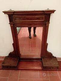 Bellissimo specchio antico, di grande qualità , ha una cornice di legno e due cassettini. Perfetto per un ingresso e anche ridipinto.