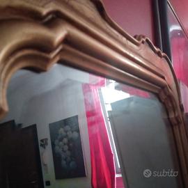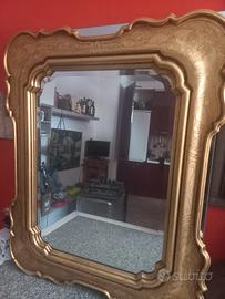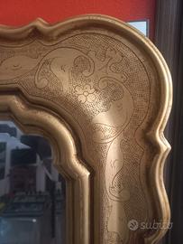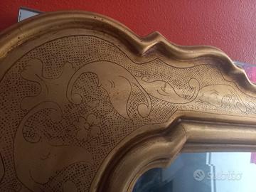 Bellissimo specchio incorniciato dorato. Specchio lavorato con sagomato su misura per cornice . Misure 75 x 90 (altezza ) cm. Ritiro zona Dalmine