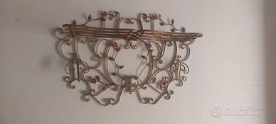 VENDO CAPPELLIERA, SEDIA E ANTICO SPECCHIO da arredamento con cornice in ferro battuto completamente lavorata a mano, con motivi floreali e decorativi colorati (foglie e rose) di pregio. Il vetro dello specchio si presenta rovinato in alcuni punti ma la cornice è in ottime condizioni al netto dell'usura del tempo. L'altezza dell'intero specchio è di circa 2 mt.c