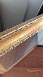 La cornice è solida e decorata, con una finitura color oro che dona carattere e raffinatezza all’ambiente.