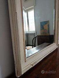 FAVOLOSO SPECCHIO STONDATO CON CORNICE IN LEGNO FATTO IN STILE SHABBY BIANCO PANNA MISURE INTERNE AL LEGNO 60CMX78CM INVECE CON CORNICE 67CMX 122 cm. VENDO SOLO A CHI SE LO VIENE A RITIRARE A GENOVA PONTEDECIMO CON MEZZO PROPRIO