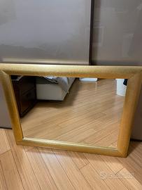 Specchio con cornice in legno color oro effetto anticato, elegante complemento di arredo per la vostra casa e in eccellenti condizioni. Dimensioni di ingombro 91x72x4 cm ( inclusa cornice) Se state leggendo questo annuncio significa che l’oggetto e’ ancora disponibile. Ritiro a mano presso la mia abitazione previo accordi telefonici.