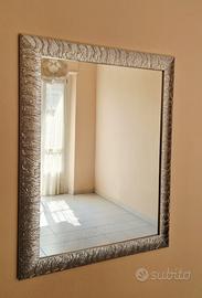 specchio misura 60x80 con cornice in legno color argento. misura esterna finita 74 x 94 dotata di due ganci da parete non a vista, fatta realizzare da negozio di cornici anno 2023, vendesi per cessato domicilio dell'anziana proprietaria appartamento