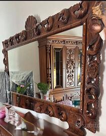 Elegante specchio in una cornice in vero legno finemente intagliato a mano un pezzo unico che aggiunge un tocco di classe qualsiasi ambiente cornice lavorata artigianalmente dettagli intagliati a mano misura 1,15 m di altezza larghezza 2 ,00 m profondità 3 cm