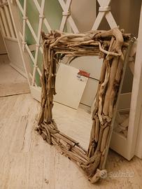 specchio con legni di mare