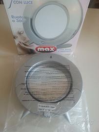SPECCHIO CON LUCE CON BASE DI APPOGGIO RUOTA A 360 GRADI DUE LATI: NORMALE E TRIPLO INGRANDIMENTO TASTO: ON/OFF NUOVO