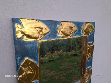 Specchio di manifattura artigiana sarda. Un vero affare! Pesci in bassorilievo colore oro con sfondo sottomarino azzurro. ideale per qualsiasi location.