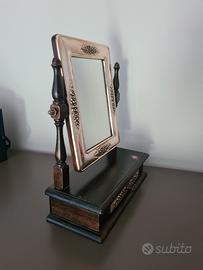 Specchio da tavolo della Argenti Fava Genova. Interamente in legno ed argento. Cassetto portagioie.