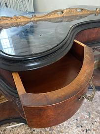 Specchiera con tavolino in legno cassetti Antichità Antiquariato Originale
