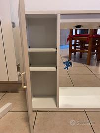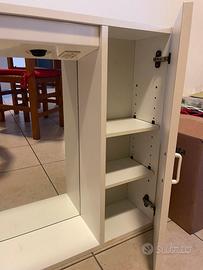 Vendo specchio contenitore da bagno per rinnovo locali e rifacimento stanza. Il mobile è usato e presenta alcuni segni di usura dovuti al tempo. Una delle maniglie è da incollare o sostituire. Specchio con luce da tre portalampadine E14.