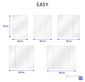 Specchio contenitore con illuminazione easy SENSEA bianco L 80 x H 70.7 x P 16 cm Lo specchio led EASY è il nuovo partner che stai cercando. Con la sua finitura bianca opaca e gli angoli arrotondati, valorizzerà un bagno in stile design. Grazie alla sua luce laterale frontale, è ottimizzato per la tua routine quotidiana: lavarsi i capelli o i denti, applicare la cura della pelle e molto altro ancora. La sua temperatura di colore della luce (6000K) è una luce potente che illuminerà tutta la tua stanza. E' dotata di dimmer per personalizzare la propria luce. Gli armadietti a specchio EASY sono dotati di ripiani regolabili in modo da poter riporre tutti i tuoi oggetti essenziali (anche le bottiglie di lacca per capelli!). Per un maggiore comfort di utilizzo, le ante sono dotate di sistema di chiusura ammortizzata. Larghezza (in cm)80 Altezza (in cm)70.7 Profondità (in cm)16 Spessore delle mensole interne (in mm)15 Colorebianco Chiusura rallentataSì AntigraffioSì Specchio antiappannamentoNo InterruttoreSì Tipo di installazioneDa appendere Tipo di minuteriaSistema soft close per ante Trasformatore inclusoSì Ferramenta inclusaNo Presa inclusaNo Numero di ante3 Numero di mensole dello specchio contenitore4 Vendo per trasloco. Solo consegna a mano in zona Borgo Vittoria, Torino.