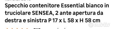 Specchio con contenitore per bagno/lavanderia l come da foto colore bianco due ante due ripiani allinterno. Nuovo momtato mai utilizzato.