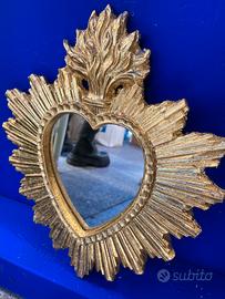 Specchio cuore sacro in legno decorato a mano in foglia similoro