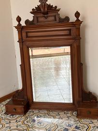 Antico specchio d’appoggio in legno massello. Da incollare il pezzo superiore. Solo ritiro a mano sul posto