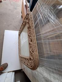 Vendo splendido specchio d'arredo, un pezzo dal carattere esclusivo ideale per chi cerca un elemento di lusso e naturalezza. La generosa cornice è realizzata in marmo travertino ricomposto, materiale celebre per le sue venature uniche che donano un aspetto materico e senza tempo.