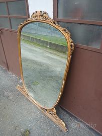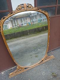 Specchio d'epoca H. 131cm, la parte più alta misura in larghezza 96cm, la parte più bassa è di 74cm. Da restaurare.