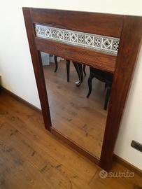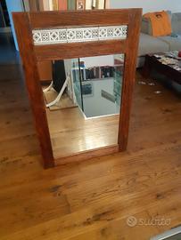 Specchio da appendere con misure complessive 116 x 76 cm.Materiale in legno con piastrelle decorative Solo ritiro a mano, visibile a Genova Quarto