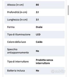 Causa errato acquisto vendo specchio da bagno ovale luce integrata 80x50 ancora imballato con plastica protrttiva