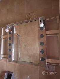 Ottimo specchio in acciaio vintage, anni '70 , due luci e due sportelli laterali a scomparsa