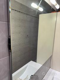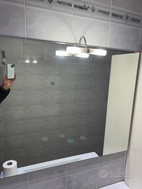 Vendo causa trasloco specchio da bagno come nuovo con faretto (lampadine led), interruttore e presa sul fianco. Dimensioni: larghezza 91cm, altezza 74,5cm, spessore 3cm. Ritiro in Torino. Non spedisco.