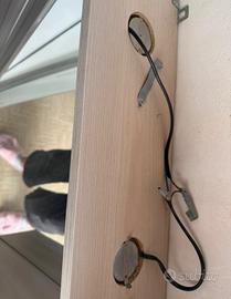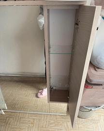 Specchio da bagno moderno con illuminazione LED integrata, collegamento elettrico funzionante. Dotato di piccolo armadietto interno, ideale per riporre cosmetici e accessori.
