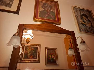 << 30 euro >> grande specchio MOLATO CON LAMPIONCINI OTTONE CON VETRI PER BAGNO PUO ESSERE USATO ANCHE IN ALTRE LUOGO !!!! 82 CM larghezza e 117 altezza massima al centro la cornice è in vero legno !!! ----- CONSEGNA PIACENZA