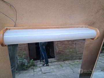 Specchi da bagno in stile anni 90 con luce nella parte superiore da collegare direttamente alla presa, non c'è interruttore dedicato. Disponibili 2 pezzi. Misure: altezza 118, larghezza 80. profondità le spese di spedizione sono riferite a Siena e dintorni