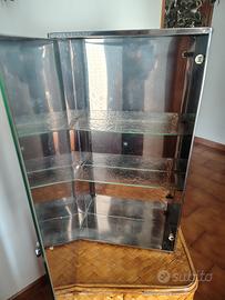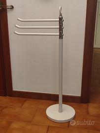 Armadietto pensile in metallo con anta a specchio e 2 ripiani interni in vetro 33x63x13. Piantana porta asciugamani con 3 bracci girevoli, struttura in acciaio e base rotonda solida